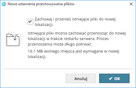 Zaznacz, aby przenieść istniejące pliki do nowej lokalizacji zdefiniowanej wcześniej.
