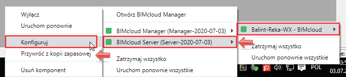 Ponowna konfiguracja komponentów BIMcloud
