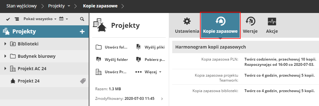 Określenie ustawień kopii zapasowej dla folderu nie spowoduje utworzenia kopii zawartości tego folderu. Jedynym celem zdefiniowania ustawień kopii zapasowych dla folderu jest zastosowanie tych ustawień do zawartych w nich projektów / bibliotek Teamwork.
