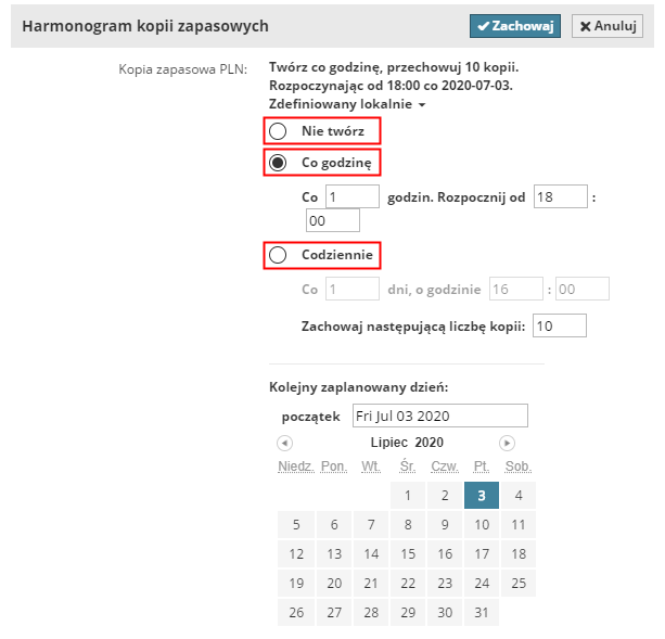 Tworzenie harmonogramu automatycznych kopii zapasowych