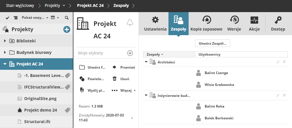 Grupuj dowolne projekty, pliki i podfoldery w jednym miejscu i przypisz do niego Zespół użytkowników