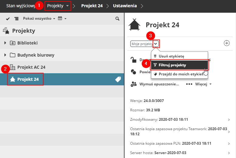 Użyj etykiet do filtrowania i lokalizacji elementów projektu w BIMcloud Manager