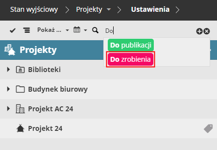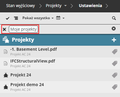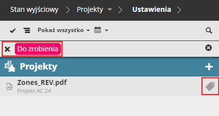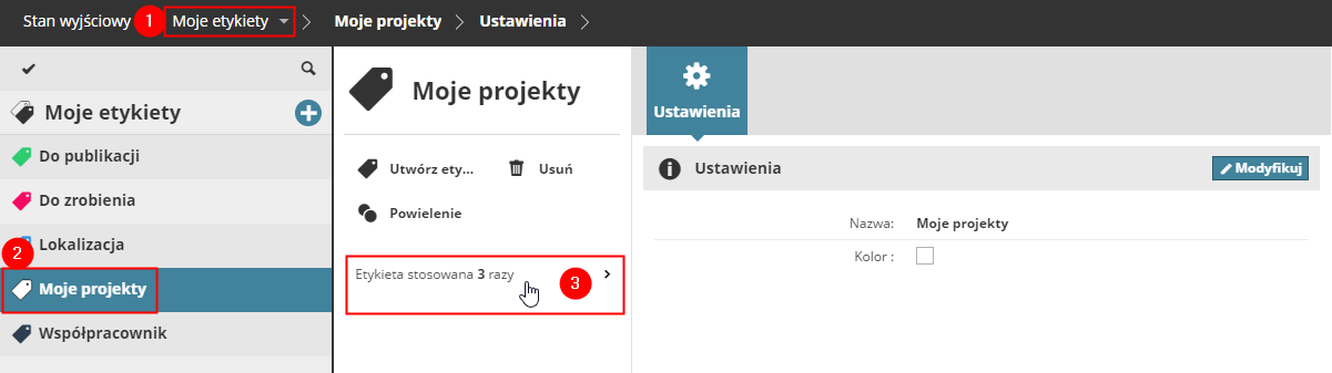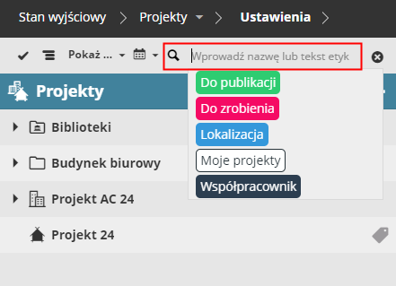 Wybierz etykietę, według której chcesz filtrować (np. „Moje projekty”).