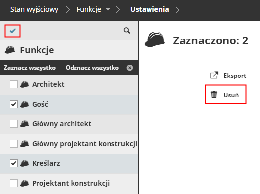 Usunięcie jednej lub więcej funkcji z BIMcloud