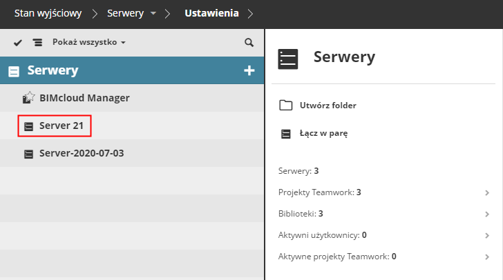 BIMcloud Server automatycznie pojawi się w Nawigatorze BIMcloud Managera.