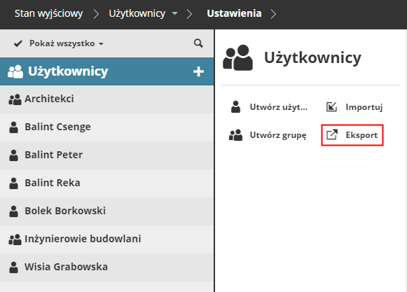 Użyj tej funkcji do przeniesienia użytkowników do innego BIMcloud lub jako kopia zapasowa