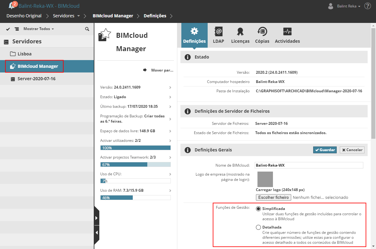 O BIMcloud oferece duas abordagens para as funções administrativas no BIMcloud: Simplificada e Detalhada.