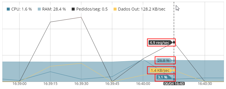 Passe o cursor sobre qualquer ponto no gráfico para ver esses dados para um momento específico.