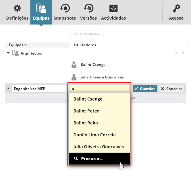 Definir uma Equipa para um Projecto BIMcloud