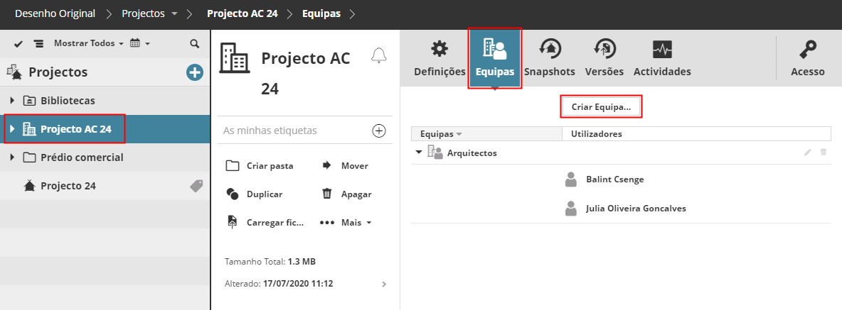 Criar ou adicionar uma Equipa de Projecto BIMcloud