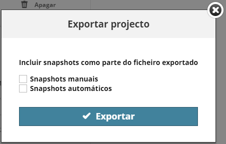 Se necessário, seleccione opções para incluir snapshots no ficheiro exportado.