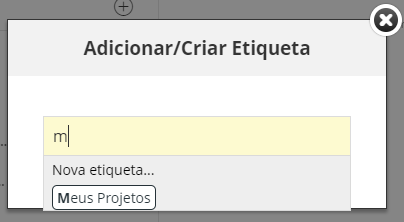 Comece por introduzir o nome duma etiqueta existente (p. ex. "Meus Projectos") até que a etiqueta desejada aparece na lista abaixo. Clique para atribuir.