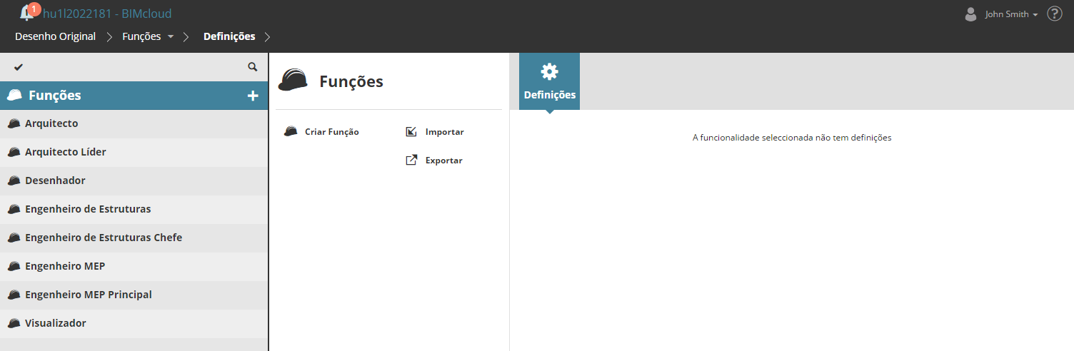 Funções são uma definição de permissões, que descrevem o que o dono pode fazer com tipos de elementos ou tipos de dados específicos, tanto no BIMcloud Manager ou em projectos Teamwork do Archicad.
