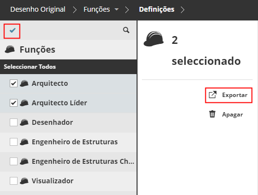 Os dados de todas as funções que está a exportar serão colocados num único ficheiro e descarregados para a pasta de download do seu browser, com a extensão .bimroles.