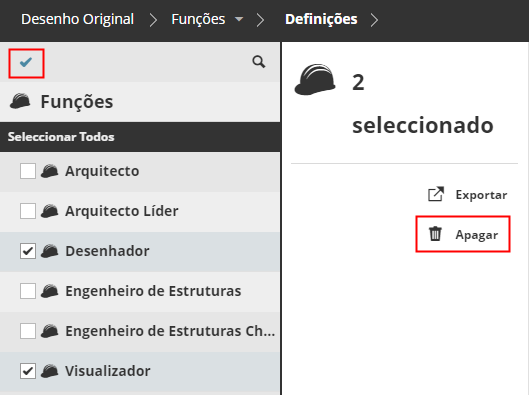 Nota: Para seleccionar múltiplos itens no Navegador, active as caixas de selecção clicando na marca de selecção no topo da página.