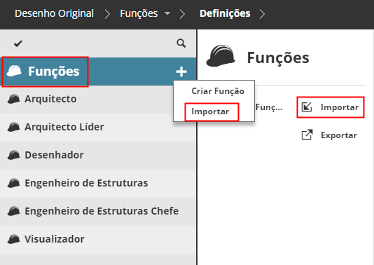 Primeiro, exporte as funções do outro BIMcloud. Para este processo, ver: Exportar funções.