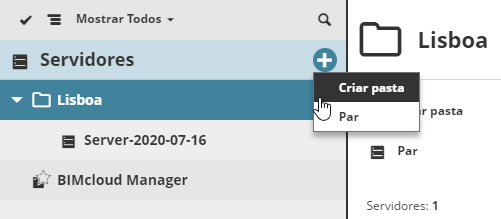 Na página Servidores do BIMcloud Manager, clique em Criar Pasta e introduza o nome da nova pasta no diálogo emergente. Assegure-se de que o nome da nova pasta é único dentro desta pasta.