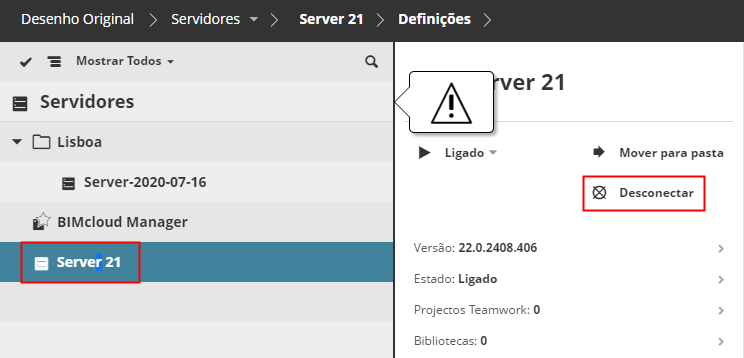 Desconectar o BIMcloud Server