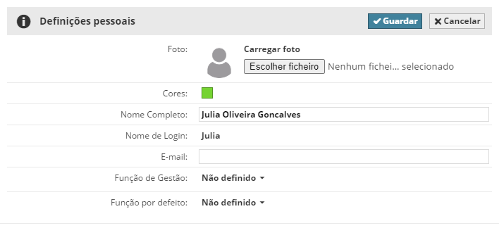 - Digite o endereço de email do utilizador. Carregue uma foto opcional e defina uma cor de utilizador.