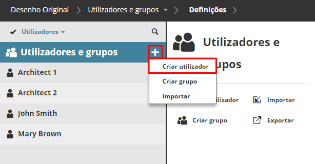 - Abra a página Utilizadores e grupos do BIMcloud Manager.