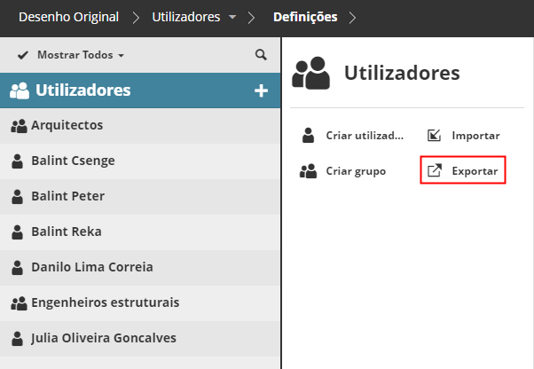 Usar esta opção para transferir utilizadores para um BIMcloud diferente ou como backup