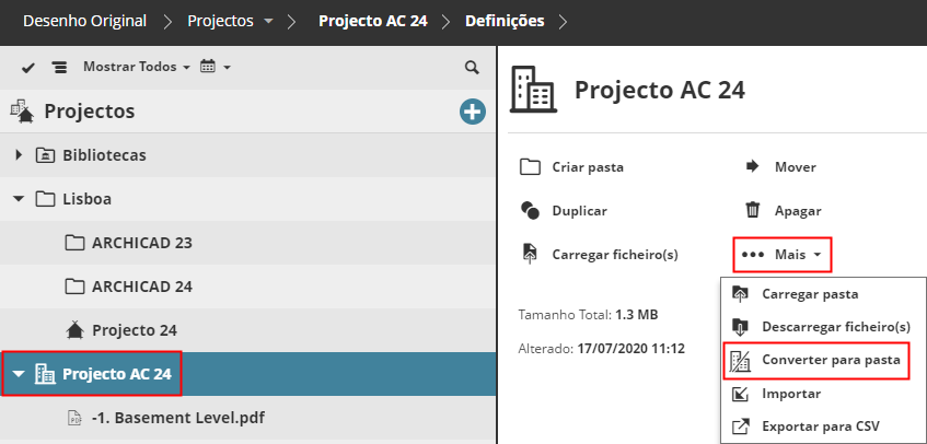 Se a sua páginas de Projectos contém quaisquer Projectos BIMcloud, deve convertê-los agora para pastas. Os conteúdos permanecerão na pasta, mas as definições de Equipas dos Projectos BIMcloud serão eliminadas.