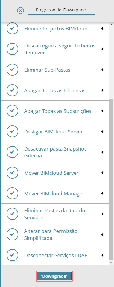 Conforme ilustrado no Assistente, concluiu todos os passos necessários para o downgrade.