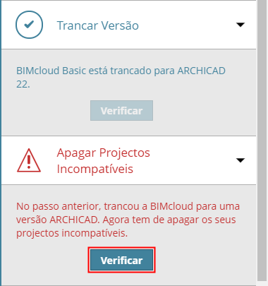 No passo anterior, restringiu o BIMcloud Basic a uma determinada versão Archicad.