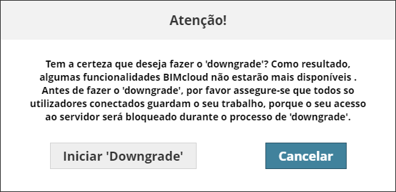Se não a desactivar, o seu BIMcloud Server irá para offline depois do downgrade!