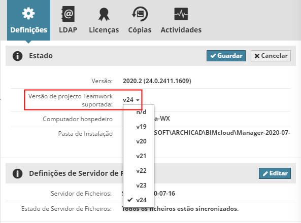 Em Versão de projecto Teamwork suportada: Escolha a única versão Archicad a suportar.