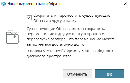 - Отметьте маркер Сохранить и Переместить Образы, чтобы переместить существующие файлы образов в только что заданную папку. Если этот маркер не отмечен, то все существующие образы будут удалены.