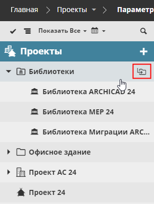 В режиме показа одноуровневого списка на странице Проектов в BIMcloud Manager: