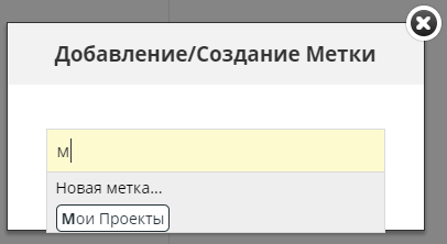 Начните ввод наименования уже существующей метки (например, “Мои Проекты”), чтобы отобразить ее в находящемся ниже списке. Для назначения сделайте щелчок мышью.
