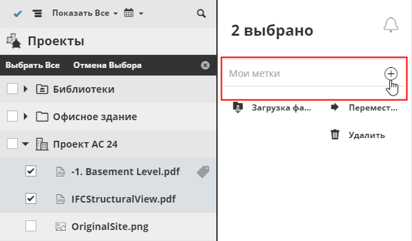 В результате метка (например, “Мои Проекты”) будет назначена выбранным элементам.