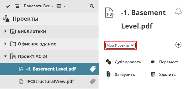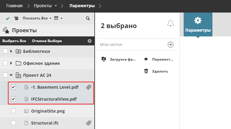 Элементы, которым можно назначить метки, отображаются на странице Проектов. К ним относятся: Проекты Teamwork, Проекты BIMcloud, Библиотеки, папки и загруженные файлы.