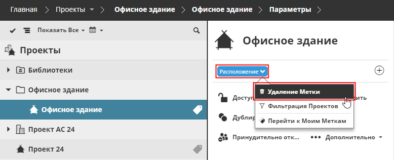 В Сводной Панели щелкните на той метке, которую требуется удалить.