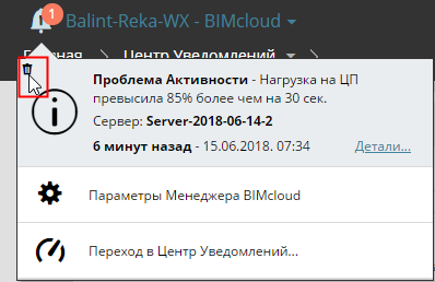 Центр Уведомлений содержит список всех актуальных Уведомлений BIMcloud. Чтобы открыть Центр Уведомлений, выполните одно из следующих действий: