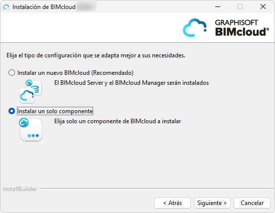 Elija Instalar un solo componente, y haga clic en Siguiente.