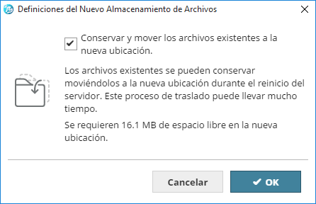 Seleccione esta opción para mover los archivos existentes a la nueva carpeta que acaba de definir.