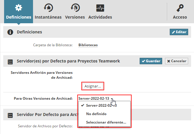 Puede definir servidores anfitrión por defecto por separado y para diferentes versiones de Archicad, o usar un solo servidor por defecto para todas las versiones de Archicad.