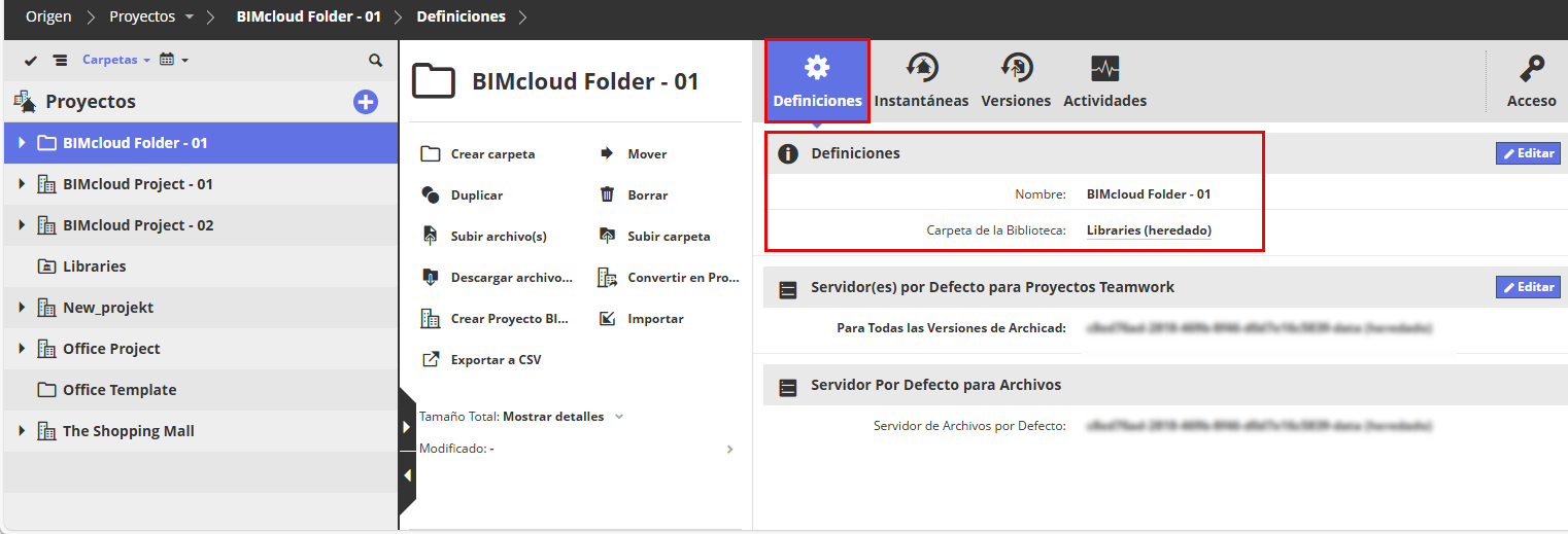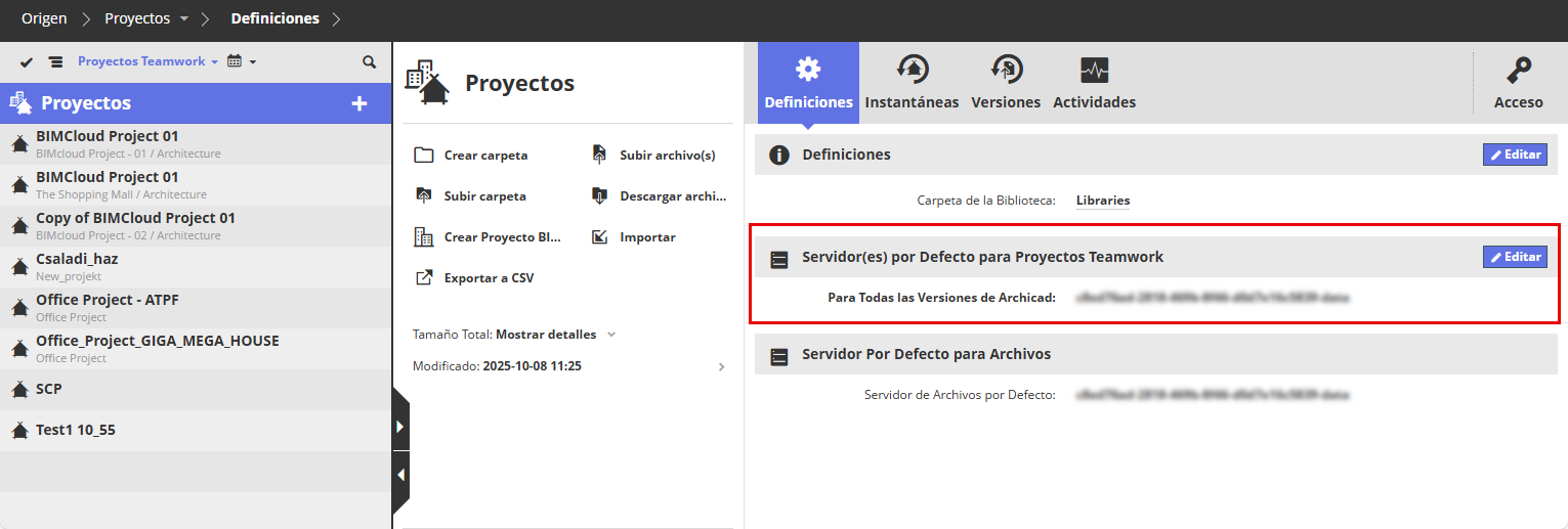 Cuando un usuario comparte un proyecto desde Archicad y lo coloca en la carpeta BIMcloud seleccionada actual, el proyecto será alojado automáticamente en el BIMcloud Server elegido aquí.