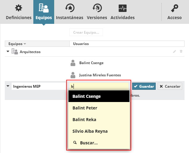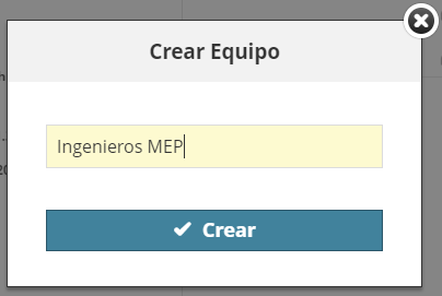 - Escriba un nombre de Equipo (p. ej., “Ingenieros MEP”), y haga clic en Crear