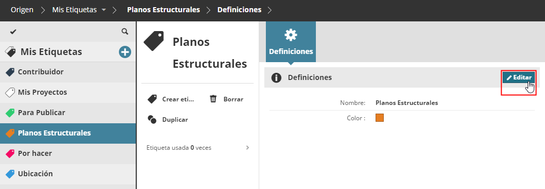 Abra la página Mis Etiquetas del BIMcloud Manager.