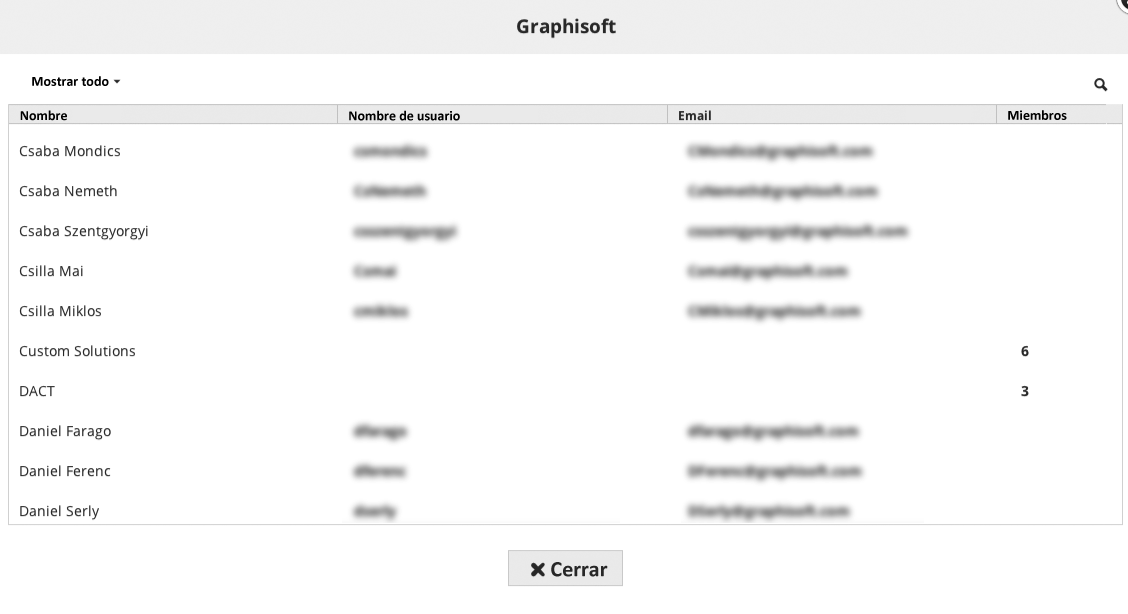 Miembros: listado separado por comas de los miembros del grupo