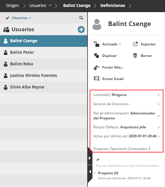Admin. del Servidor o Proyecto (si aplicable), si la Administración Simplificada está en uso. Ver |