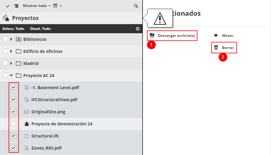 Seleccione los archivos subidos y haga clic en Descargar Archivos, para tener copias locales guardadas.