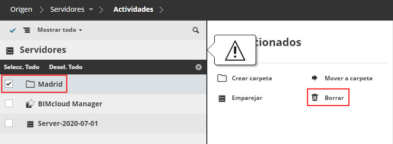 BIMcloud Basic no soporta carpetas en la página de Servidores.
