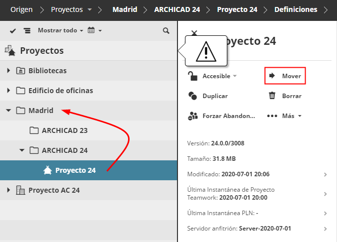 Si sus proyectos Teamwork están ubicados en subcarpetas, deberá moverlos ahora: