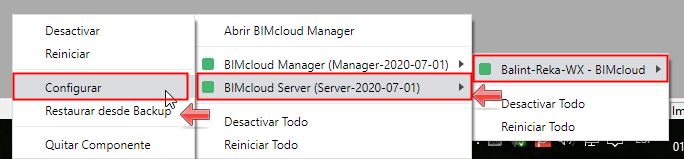 Abra el Configurador del BIMcloud Server desde el icono de la bandeja: