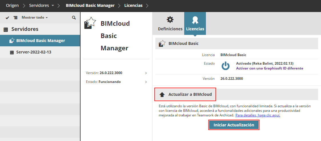 Siga estos pasos para actualizar su BIMcloud Basic a BIMcloud.